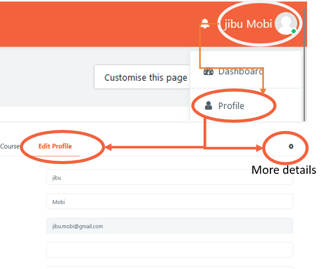 - Using the web (internet/computer browser); click on the user icon on the top right, select edit profile and update your details, then click submit to save the details.